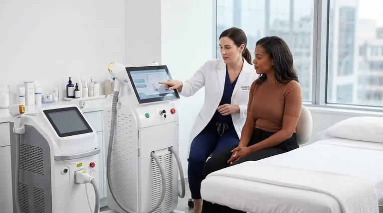 Diode Laser (800–810 nm wavelength) penetrates deeply to disable follicles by heating melanin. Its precision makes it ideal for coarse, dark hair but requires careful calibration for darker skin to avoid overheating.